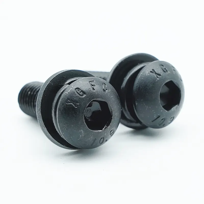 Slovenski Czarne śruby z gniazdem gniazda sześciokątowego Jinsixi są montowane fabrycznie śrubami, płaskimi podkładkami i podkładkami sprężynowymi. Śruby zapewniają główną siłę mocowania, płaskie podkładki znajdują się między powierzchnią złącza i podkładki sprężyn, a podkładki sprężynowe znajdują się między płaskimi podkładkami a głowicami śrubowymi. Po złożeniu podkładki nie spadną łatwo z śrub, co ułatwia transport, przechowywanie i używanie, jednocześnie oszczędzając dużo czasu i wysiłku montażu.