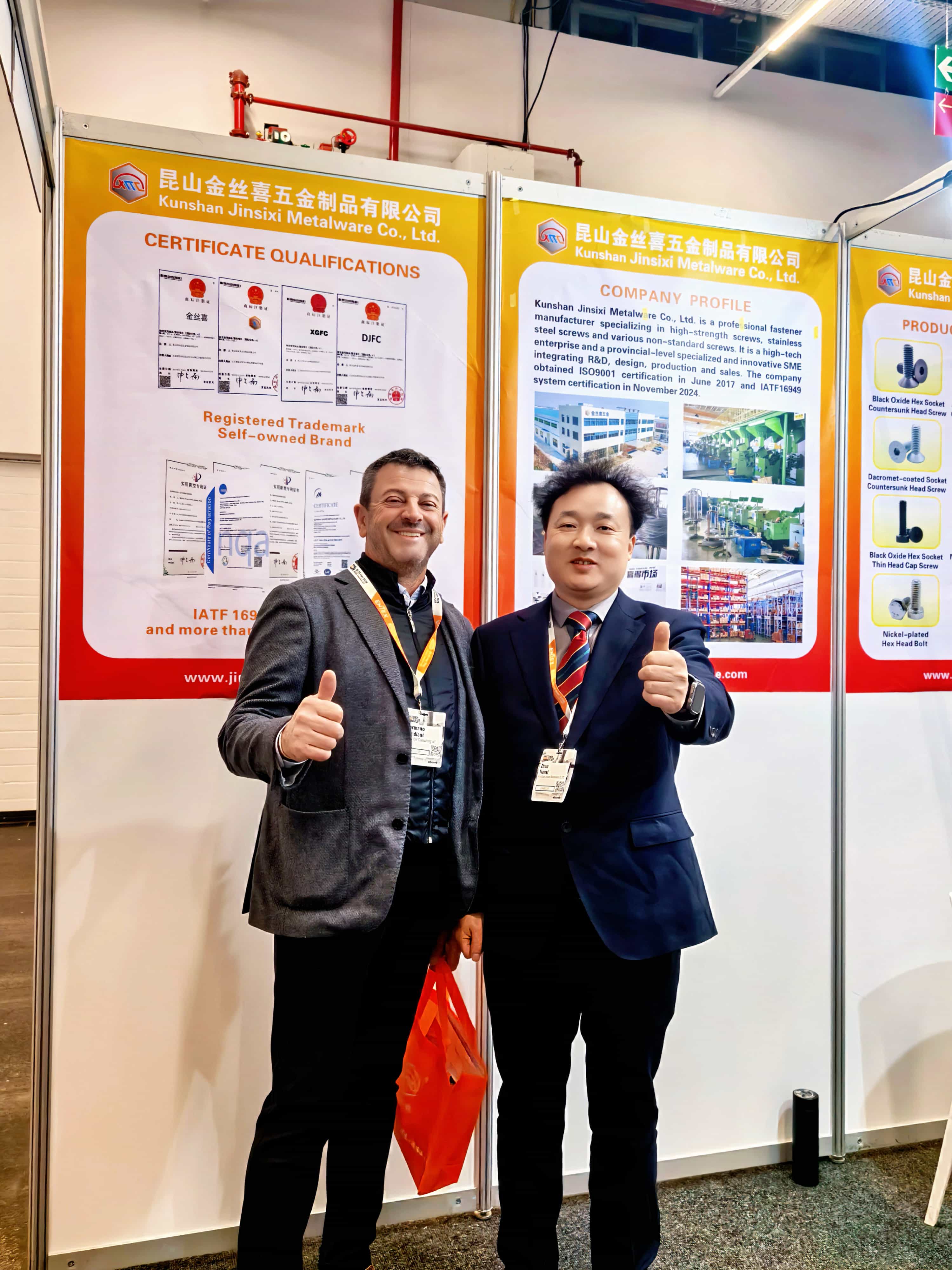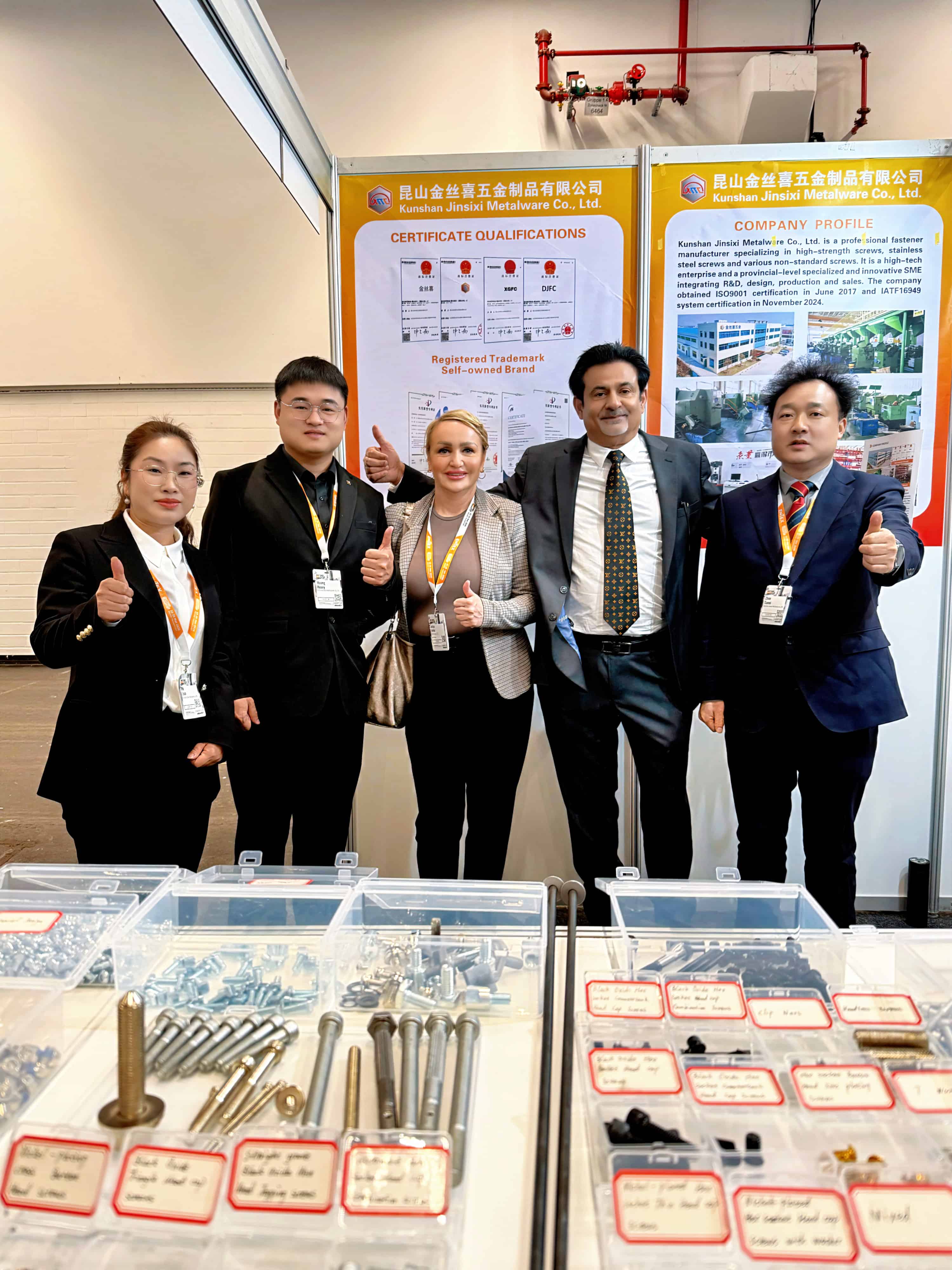 Aby w pełni wykazać swoje wszechstronne mocne strony,Jinsixiprzygotowało starannie zaprojektowane stoisko, eksponujące jego ofertęgniazdo sześciokątneIgłówka sześciokątnaprodukty charakteryzujące się różnymi procesami obróbki powierzchni, takie jak tlenek czarny, niklowane, cynkowane i powlekane Dacrometem. Produkty te są zgodne z głównymi normami, w tym GB, DIN, ANSI, JIS i ISO, i są wykonane z materiałów takich jak stal nierdzewna, stal średniowęglowa i stal stopowa. Wszystkie produkty ściśle przestrzegają systemów zarządzania jakością ISO 9001 i IATF 16949, zapewniając, że każda śruba i śruba zapewnia niezawodne i stabilne działanie mechaniczne.