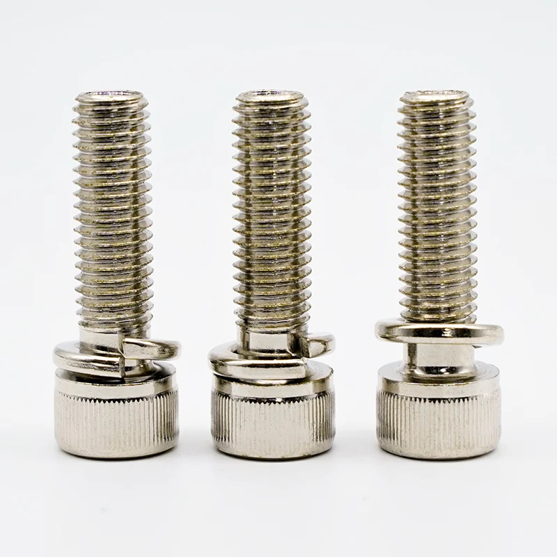 Niklowane śruby z łbem gniazdowym sześciokątnym z podkładkami sprężystymi oferują wiele zalet w porównaniu z tradycyjnymi śrubami, zwłaszcza pod względem szybkiego i łatwego montażu. Poniżej wymieniono niektóre kluczowe zalety: