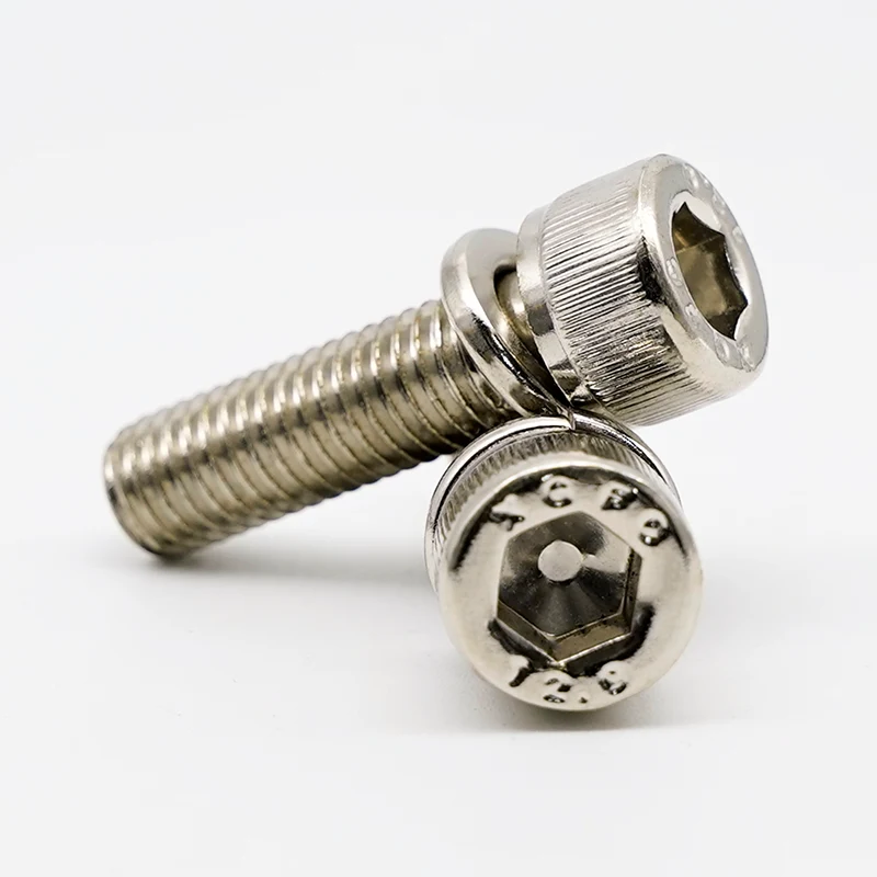Niklowane śruby z łbem gniazdowym sześciokątnym firmy JINSIXI z podkładkami sprężystymi łączą w sobie śrubę z łbem walcowym DIN 912 z wstępnie zmontowaną podkładką sprężystą. Podstawową funkcją podkładki sprężystej jest zapewnienie ciągłej siły tarcia po dokręceniu, zapobiegając poluzowaniu spowodowanemu wibracjami. Działa lepiej niż zwykłe śruby z podkładkami płaskimi pod obciążeniem dynamicznym lub w warunkach rozszerzalności cieplnej i kurczenia się.